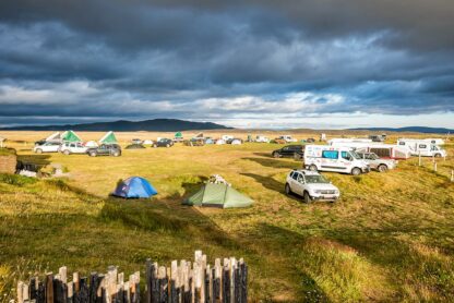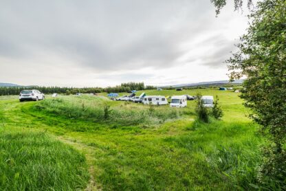 Camp near the northwest edge of the famous Stuðlagil canyon. It is open from May to October. Available facilities include toilets, showers (for a fee), a dishwashing area, and electricity for tents and caravans (not for electric cars). There is a food stand on site (9 AM–6 PM).