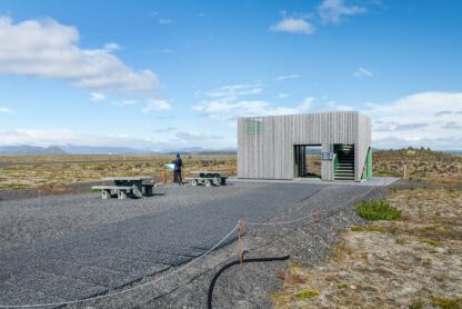 Parkoviště při vodopádu Hólmasárfoss nabídne stolek a záchod. Záchod je trochu schovaný (a zarostlý trávou) a je vzdálený asi 60 metrů od stolku podél plotu směrem k řece.
