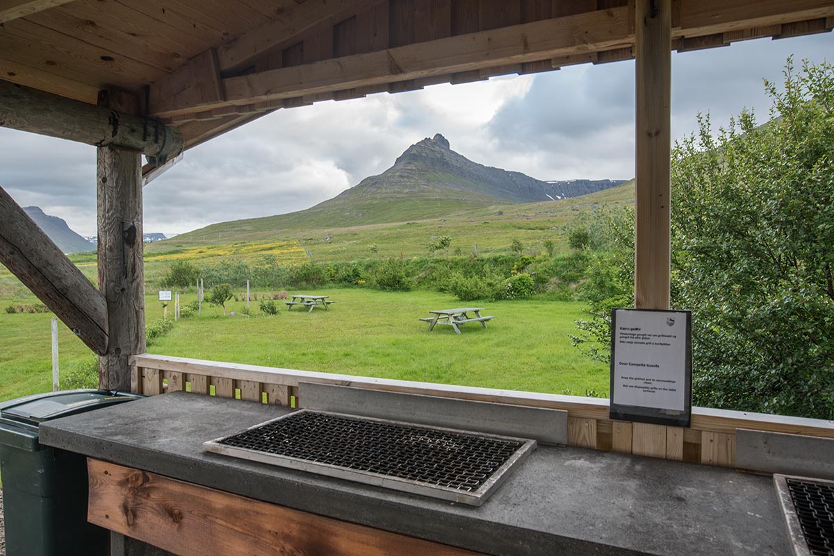Kemp nabízí čisté a vytápěné toalety a sprchy, venkovní umývárnu a elektřinu pro karavany. Za příplatek je možné navštívit goetermální bazén, kemp má přístup na pláž.