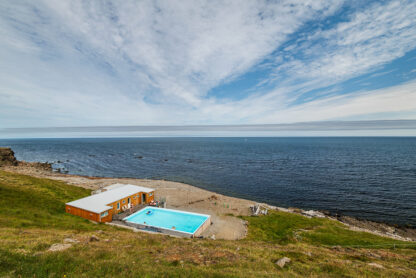 Tyto termální vany najdete přímo ve vesnici Drangsnes. Zaparkovat můžete snadno hned vedle.