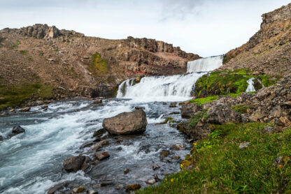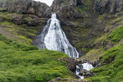Mnoho islandských pojmenovaných vodopádů není ani moc atraktivních. Tento vodopád na řece Þingmannaá je naopak velmi atraktivní a zajímavý, přesto nemá jméno. Najdete ho při jižním pobřeží Západních fjordů u Vatnsfjörður, nedaleko silnice č. 60, ze které je potřeba odbočit na nezpevněnou cestu. Od parkoviště vás čeká jen pár minut chůze, vodopády jsou členité a můžete se k nim přiblížit z mnoha úhlů.