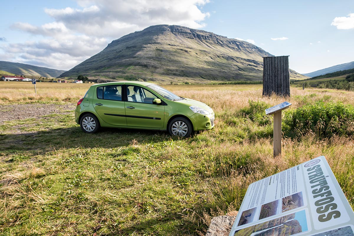 Příběh se začíná ráno, kdy byl můj plán jít fotit za dobrého světla, tedy velmi brzy ráno vodopád Strútsfoss. Ovšem ranní lenost zvítězila a než jsem se dostal k Strútsfoss, bylo už poledne. Cestou podél silnice jsem si všiml vodopádu a před ním několika rezavějících vozidel, takové hezké zátiší to bylo. A cestou zpět od Strútsfoss jsem u vodopádu zastavil a začal jsem se procházet po místě a poznávat ho, abych tu udělal pár hezkých fotek jak vodopádu, tak těch rezavějících vozidel. Jedno z vozidel mě i zaujalo jakousi konstrukcí, kterou mělo na korbě a marně jsem si lámal hlavu, k čemu takováhle divná konstrukce je.