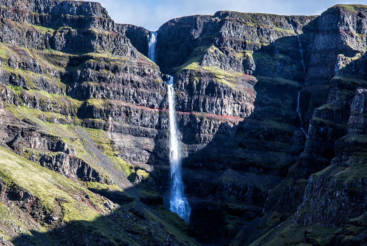 Dole se loučíme a mě Þorsteinn upozorní, že u vodopádu jsou rozvaliny bývalého mlýna, tak ať je také nafotím. Jo a nedá mi to se nezeptat, co je ta zvláštní konstrukce na korbě jednoho auta?