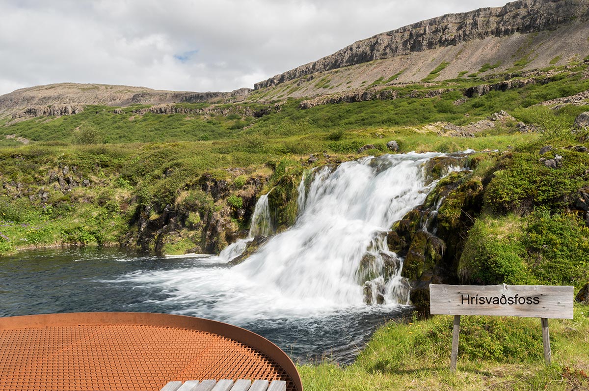 Hæstahjallafoss je prvním z vodopádů pod vodopádem Dynjandi. Pokud jste přímo u vodopádu Dynjandi, pak Hæstahjallafoss je právě vědle vás.
