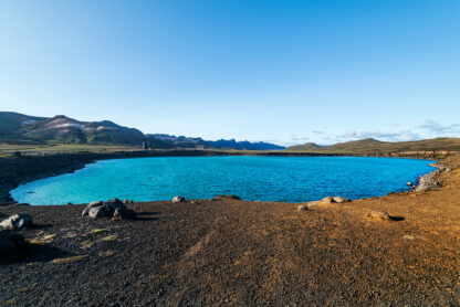 Kerið je krásný 3000 let starý kráter, na jehož dně je jezero. Kráter je známý pro svou charakteristickou červenou barvu svahů a tyrkysovou barvu vody.