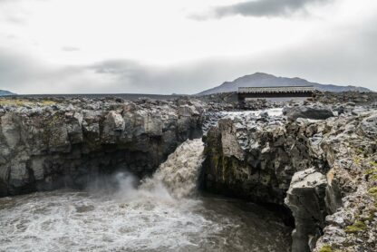 Rauðufossar is located in the central part of Iceland, near the F225 road. Find this small parking area (GPS: 64.033524, -19.346582) and from there, embark on about an hour-long trek towards the waterfall.