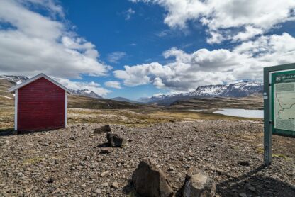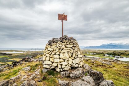Vzpomínkové místo na manžele Sigurð Torfason og Sigríði Stefánsdóttur, kteří uhořeli na své farmě poté, co zachránili své děti a vraceli se pro dobytek.