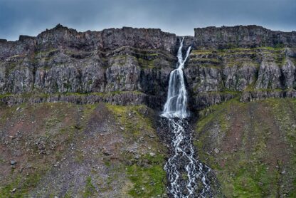 Der offizielle Name dieses Wasserfalls am Fluss Hvalá ist Gljúfrabúi, jedoch ist er bekannter unter dem Namen Drynjandi. Und wenn ich „bekannter“ sage, meine ich, dass mindestens 10 Leute davon wissen. Ja, so unglaublich unbekannt ist dieser schöne Wasserfall. Der Wasserfall befindet sich an der Ostküste der Region Strandir. Der Weg dorthin ist kompliziert; zuerst müssen Sie bis zum Ende der Straße F649 fahren (wo es eine Furt gibt, die es ratsam ist, nur bei Ebbe zu durchqueren), dann die Brücke über den Fluss Hvalá überqueren und sich auf den Weg durch unbekanntes Gelände machen. Es gibt hier keine Beschilderung, Ihr einziges Hilfsmittel muss Ihre Intuition (und auch GPS) sein. Als Belohnung für all diese Mühen erwartet Sie ein wirklich schöner Anblick eines Wasserfalls, den maximal einige Dutzend Menschen pro Jahr sehen.