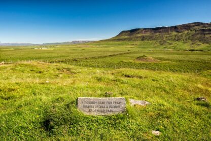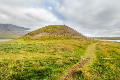 Gullsteinn ist ein großer Felsen und ein historischer Ort, an dem Þorvaldur Koðránsson, der erste christliche Missionar in Island, einst lebte.