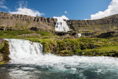 Kálfeyrarsfoss ist ein übersehener und fast völlig unbekannter Wasserfall am Fluss Dynjandisá, den Sie direkt neben der Straße Nummer 60 finden, die zum Wasserfall Dynjandi führt. Der Wasserfall ist malerisch, seine Gesamtfallhöhe beträgt etwa 15 Meter. Ein kurzer Stopp am Kálfeyrarsfoss lohnt sich auf jeden Fall, als Teil des Dynjandisheiði-Gebiets.