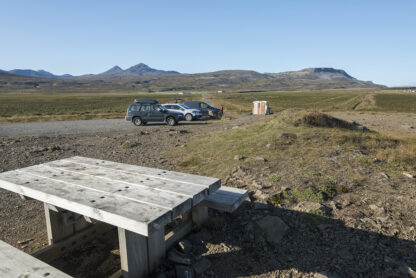 Parkplatz in der Nähe der Brücke namens Kattarhryggur (Katzenrücken), die eine der ersten Betonbrücken in Island war. Die Straße, auf der sie gebaut ist, gehört zu den frühesten, möglicherweise sogar zur ersten asphaltierten Straße nach Reykjavik. In der Nähe gibt es einen der (tausenden) unbenannten Wasserfälle Islands.