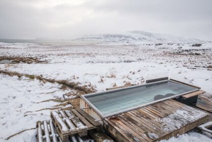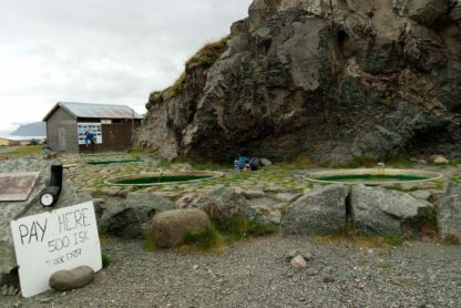 Laugarfell hat zwei künstliche Thermalbecken, die neben einem Hotel/Hostel/Campingplatz gleichen Namens liegen.