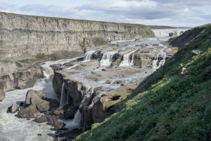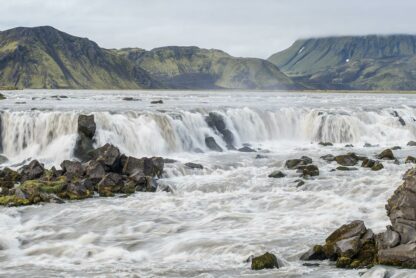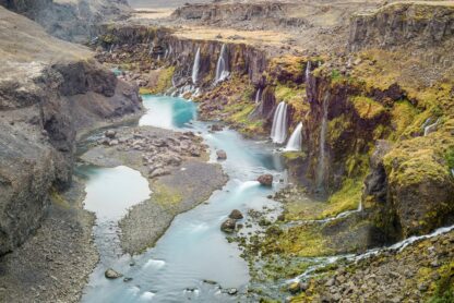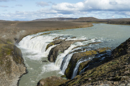 Sigöldufoss, auch bekannt als Hrauneyjafoss, ist gewissermaßen ein Opfer der technologischen Veränderungen in Island. Während der Wasserfall einst Teil eines mächtigen Gletscherflusses war, wird er heute erheblich von einem Wasserkraftwerk weiter oben im Flusslauf gezähmt. Früher war es ein mächtiger Wasserfall, der alles in seinem Weg mit sich riss; heute ist der Fluss Tungná und folglich der Sigöldufoss-Wasserfall eher sanft.