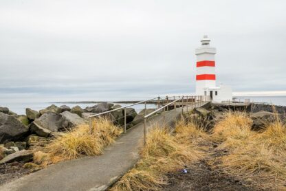 You can find the Harpa building right on the shore of the Atlantic Ocean, offering views of the harbor through its glass facade.