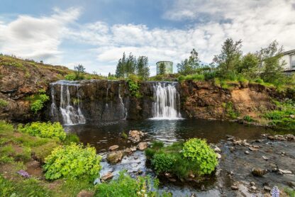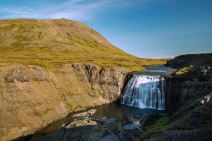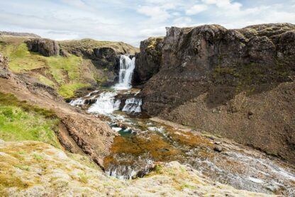 Helgufoss is a 12-meter-high waterfall located in the Greater Reykjavik area. You can find it on what is known as the Laxness Road (named after Halldór Laxness, Iceland’s most famous writer and the only Icelandic Nobel laureate), also referred to as the Poet’s Path. Thanks to the beautiful surrounding area, which is interwoven with numerous hiking trails, it can be your destination or one of the stops on your journey if you wish to stay near Reykjavik.