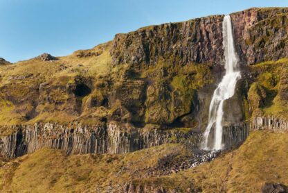 Klukkufoss, also known as the Clock Waterfall, is a smaller Icelandic waterfall nestled within beautiful basalt formations.