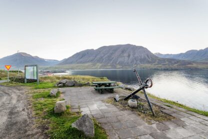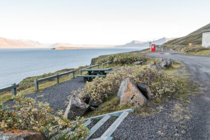 You can find the Mígandi waterfall about 8 kilometers north of the town of Dalvík, along road number 82 on the western shore of Eyjafjörður fjord. It is located approximately where the road starts to climb towards the tunnel (if you are coming from Dalvík), and it is not visible from the road (unless the wind is so strong that the waterfall appears to be ‘falling upwards’). However, there is a small parking area next to the road from where you can see Mígandi. From there, you can head towards the waterfall.
