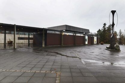It is located at Hamraborg 6 in Kópavogur, right next to the Hamraborg bus stop.
