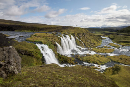 Ófærufoss is located a few kilometers off the F208 road, about halfway between Landmannalaugar and the Ring Road (crossing several rivers in both directions is necessary). From the parking area, it takes less than fifteen minutes to walk to Ófærufoss. The path is easy, and you will simply follow upstream.